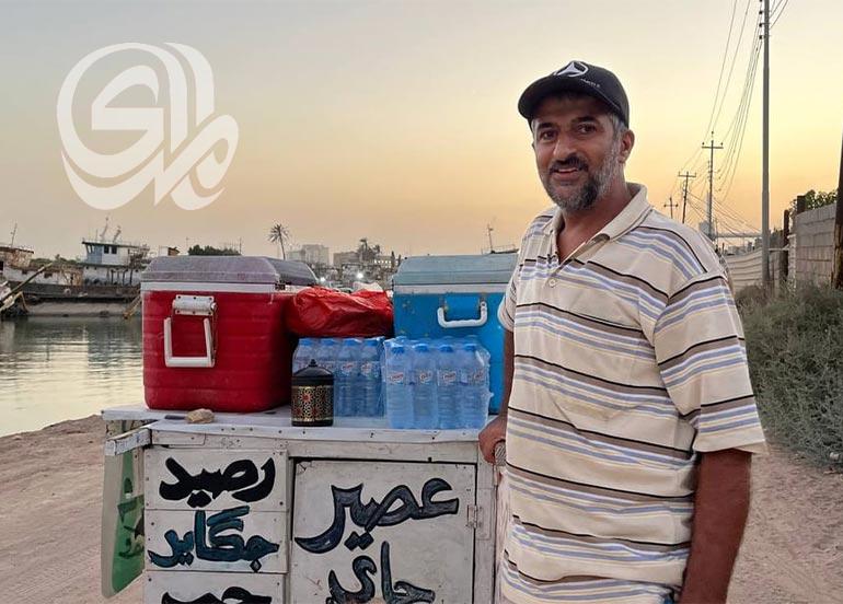 يواصل الحاج سمير دفع عربته القديمة بين أحياء منطقة الصالحية في البصرة منذ 25 عاماً، ورغم تقدمه في السن ما زالت عربته ذاتها التي صنعها بيده عام 1998 تحتوي كل ما تحتاجه العوائل المتنزهة على كورنيش التنومة، من مشروبات باردة وساخنة، وأطعمة مغلفة، وسجائر، وألعاب أطفال وحاجات أخرى.