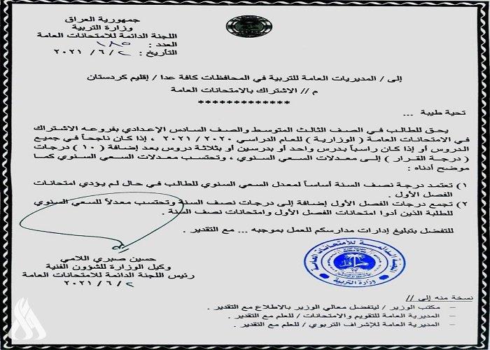 جريدة المدى > اخبار وتقارير > وثيقة.. آليات اشتراك طلبة الصفوف المنتهية بالامتحانات الوزارية
