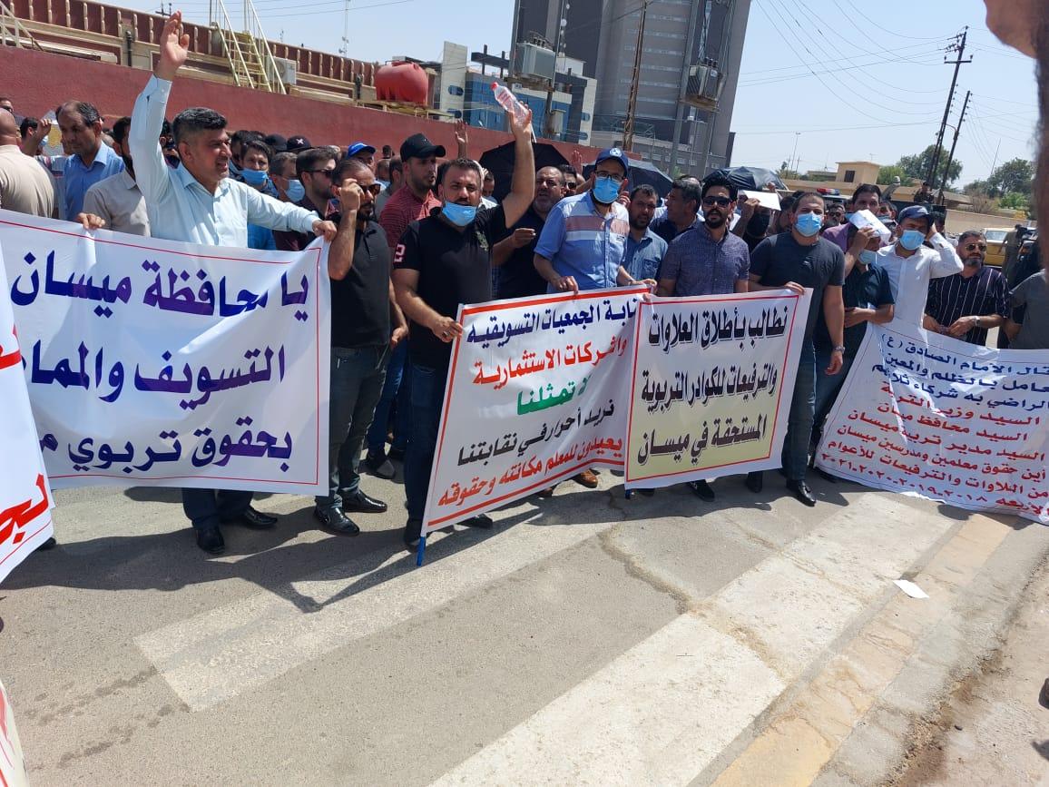 وطالبت التظاهرات والتي استقرت أمام دار ضيافة محافظة ميسان مقر مكتب المحافظ في المدينة، بـ "الكشف عن اسباب التلكؤات الادارية والمتابعين بها من طرفي مديرية تربية ميسان والمحافظة".