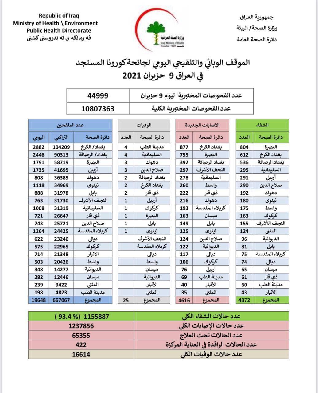 الموقف الوبائي: 4616 إصابة وتماثل 4372 حالة للشفاء