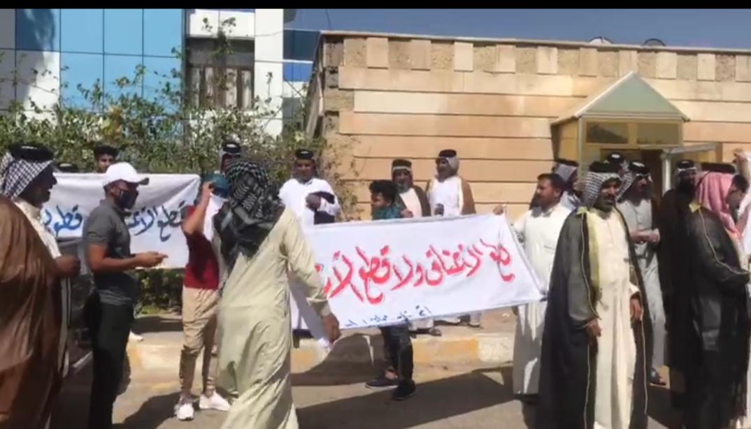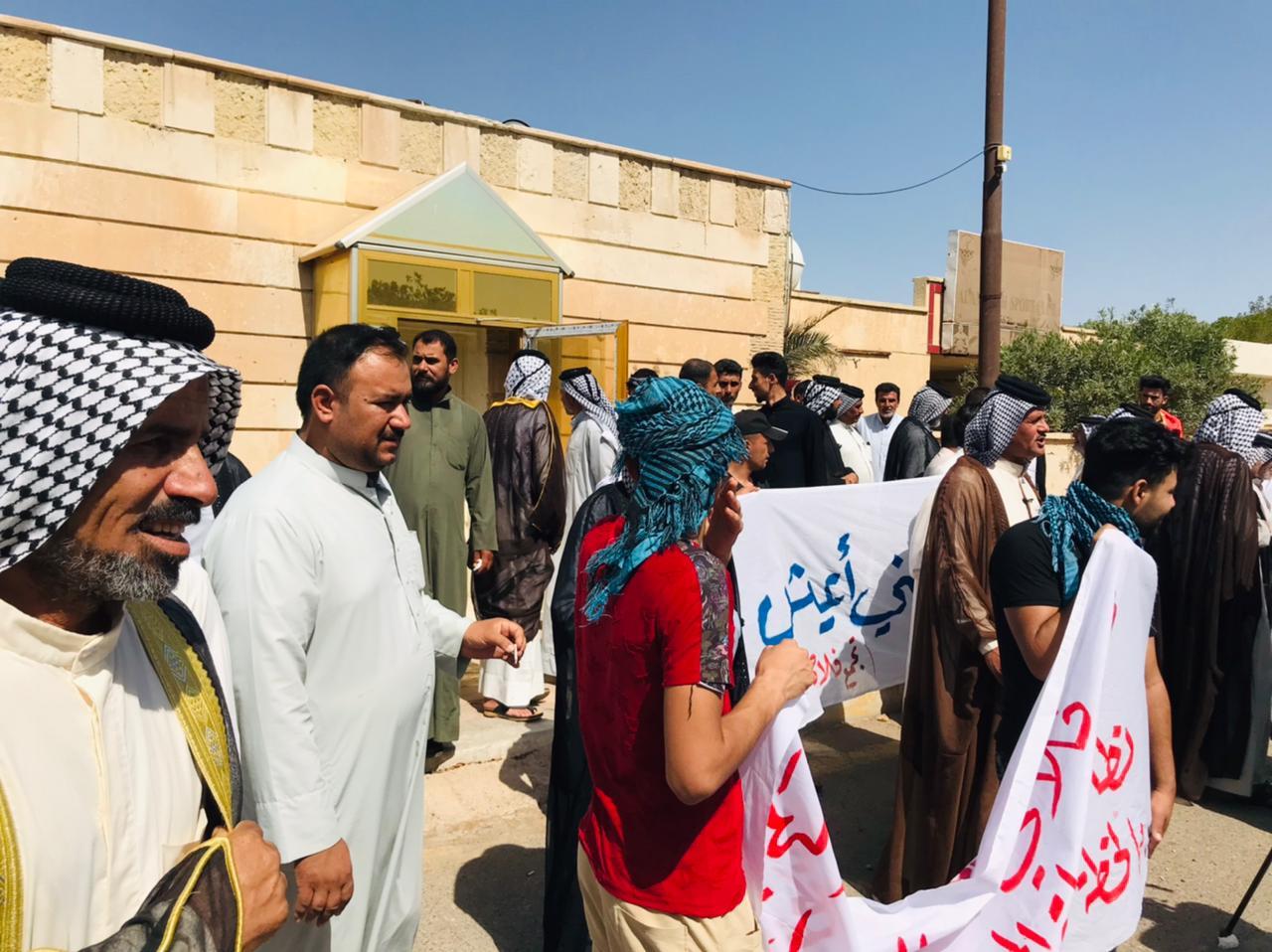 نظم العشرات من الفلاحين، اليوم الاثنين، تظاهرة أمام دائرة ري ميسان للمطالبة بتوفير المياه وشمولهم بالخطة الزراعية.