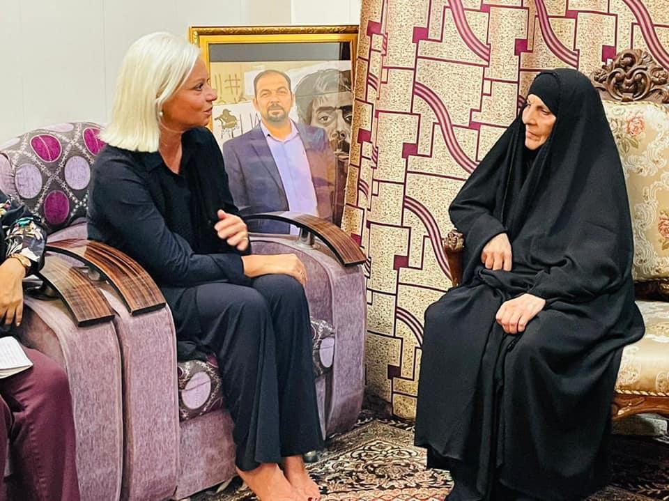 زارت ممثلة الأمين العام للأمم المتحدة جنين بلاسخارت، اليوم الخميس، منزل والدة الناشط إيهاب الوزني الذي اُغتيل في محافظة كربلاء.