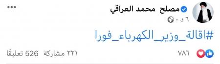 وجاء ذلك بعد دقائق من نشر زعيم التيار الصدر الصدري مقتدى الصدر، تدوينة على تويتر، شخص فيها 18 سبباً لتردي الكهرباء في العراق، وقدم 15 حلاً لذلك، فيما توعد بأن "الحكومة إن لم تسع للحل فعليها أن تتحمل التبعات ومن بينها عدم سكوتنا عن التقصير الواضح والجلي".