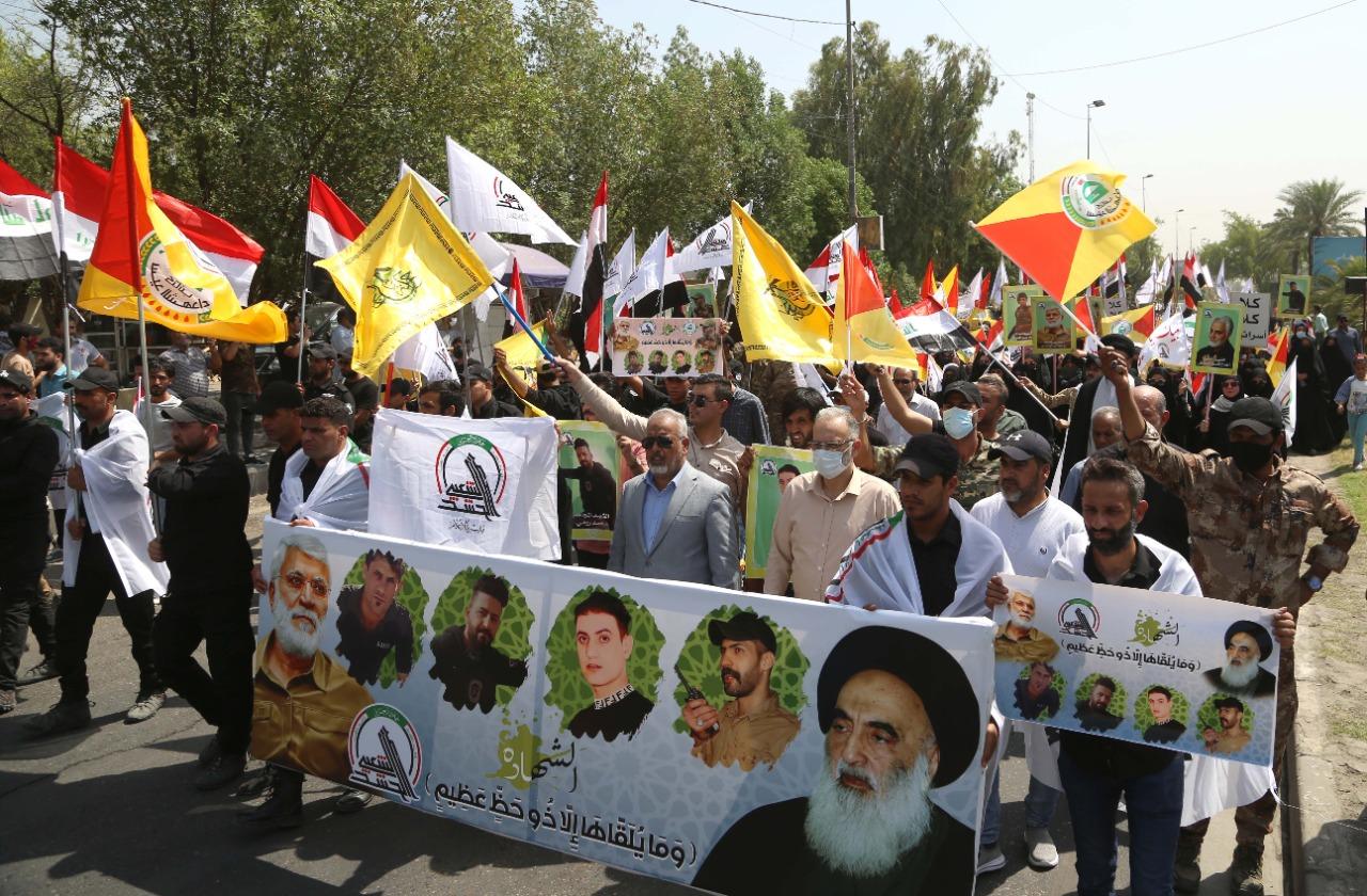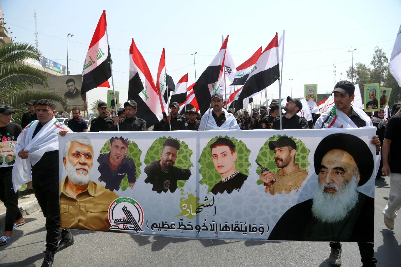 انطلقت، صباح اليوم الثلاثاء، في العاصمة بغداد مراسم التشييع الرمزي لشهداء الحشد الشعبي الذين سقطوا جراء القصف الأميركي على الحدود العراقية – السورية.
