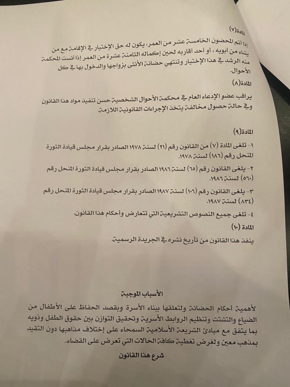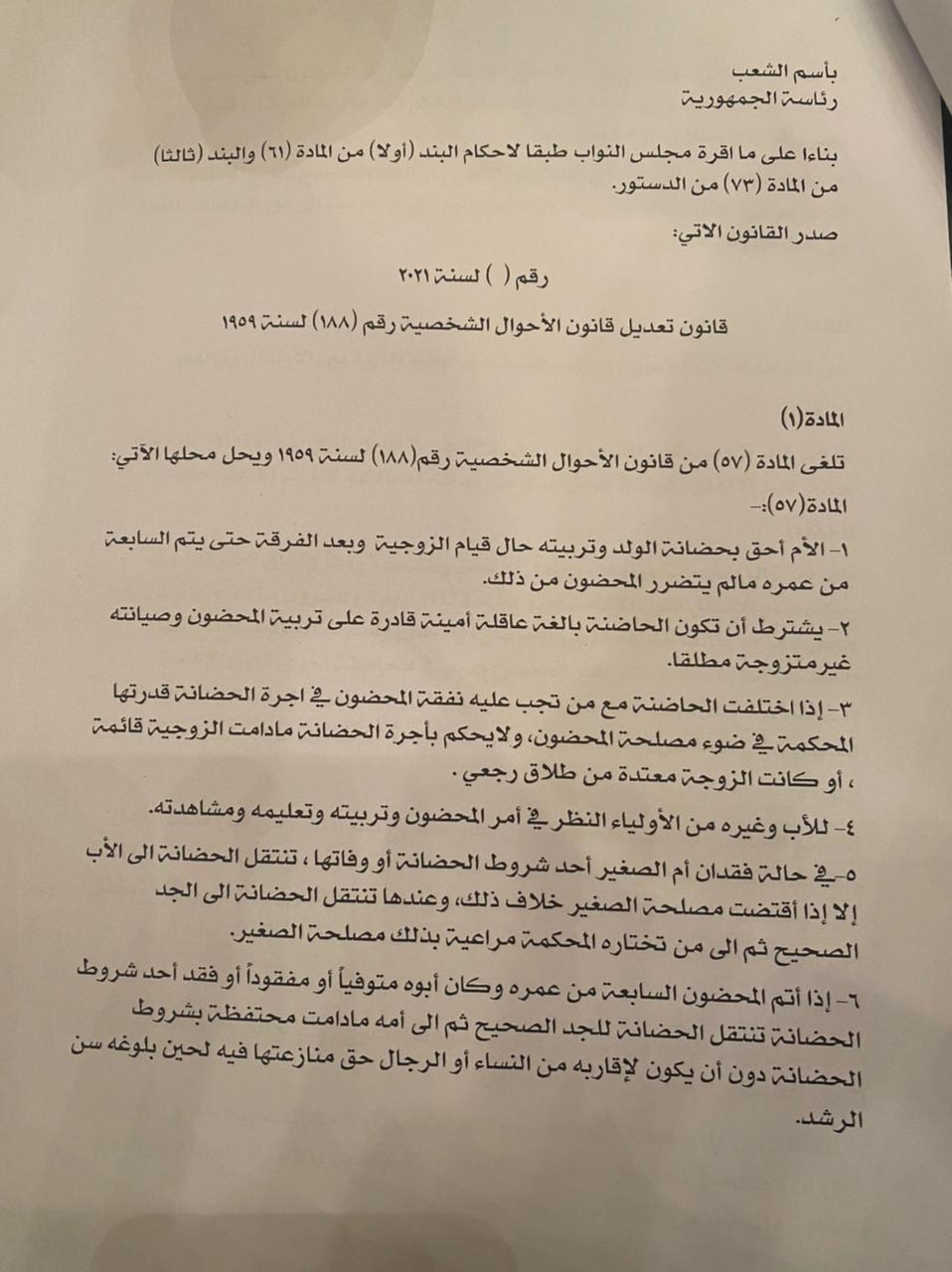 وحصلت (المدى) على وثائق تظهر فقرات مقترح تعديل قانون الأحوال الشخصية: