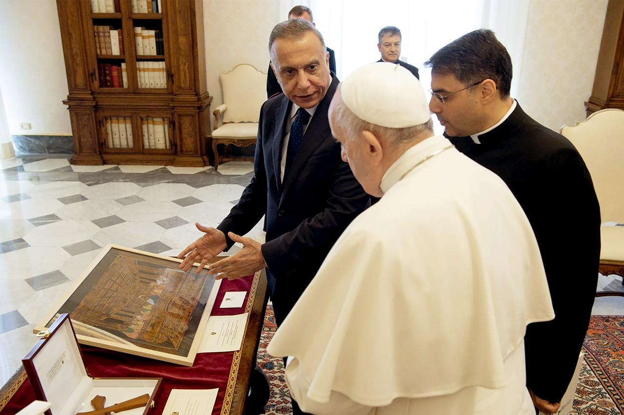 التقى رئيس مجلس الوزراء مصطفى الكاظمي، اليوم الجمعة، قداسة البابا فرانسيس، بابا الفاتيكان.