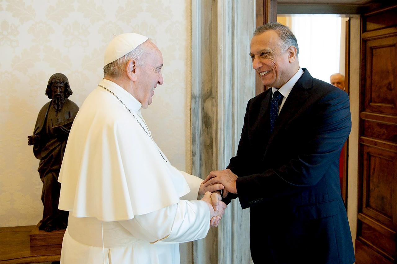 من جانبه رحب قداسة البابا فرانسيس الاول، بالكاظمي والوفد المرافق له، واكد اهمية تعزيز جهود السلام في المنطقة، وبما يحقق ازدهار الشعوب واستقرارها، بحسب بيان المكتب الاعلامي.
