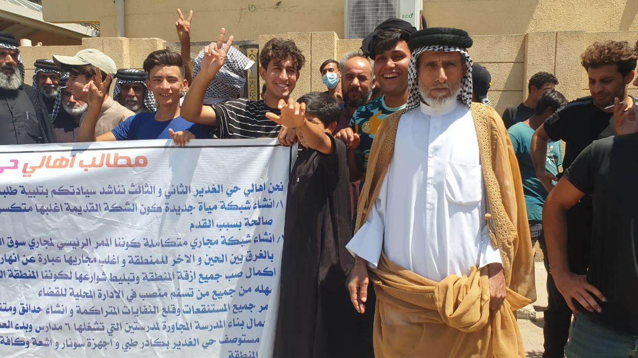 وقال مراسل (المدى)، إن "العشرات من اهالي منطقة حي الغدير في قضاء سوق الشيوخ جنوبي محافظة ذي قار خرجوا بتظاهرات غاضبة أمام مبنى بلدية القضاء".