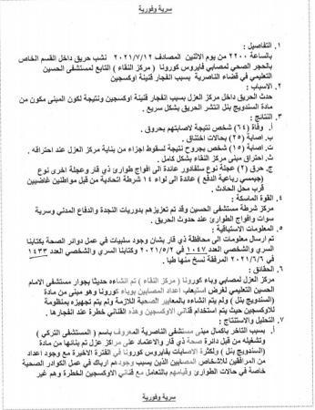 فيما كشف التقرير عن تفاصيل جديدة ومثيرة حول فاجعة حريق مستشفى الإمام الحسين في مدينة الناصرية، كما حدد الأسباب والنتائج.