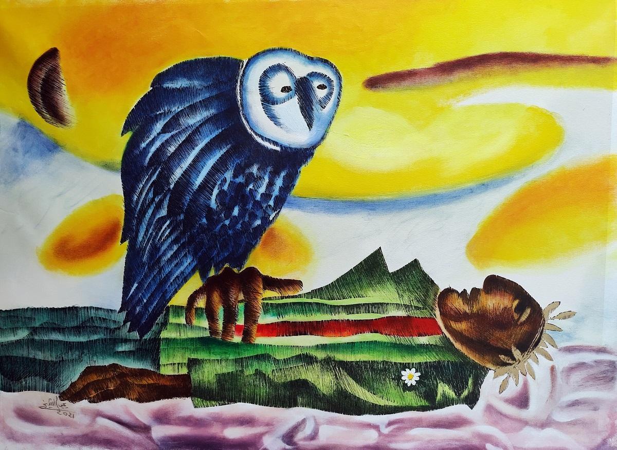 في ممارستي اليومية للرسم التي هي تأكيد للذات، كانت الكتابة المرشد إلى طرائق الرسم وخصائصه التعبيرية. إنهما اغنية؛ كلمات وموسيقى. في الرسم انتهز فرصة مطاردة الكلمات واصطيادها. في الكتابة أفكر بالرسم، فتأتي الكلمات ملطخة بالألوان، وفي الرسم أفكر بالكتابة فتأتي الاشكال منسوجة بكلمات من هواء... احداهما يُغيّب الآخر او يستدعيه إلى الحضور.