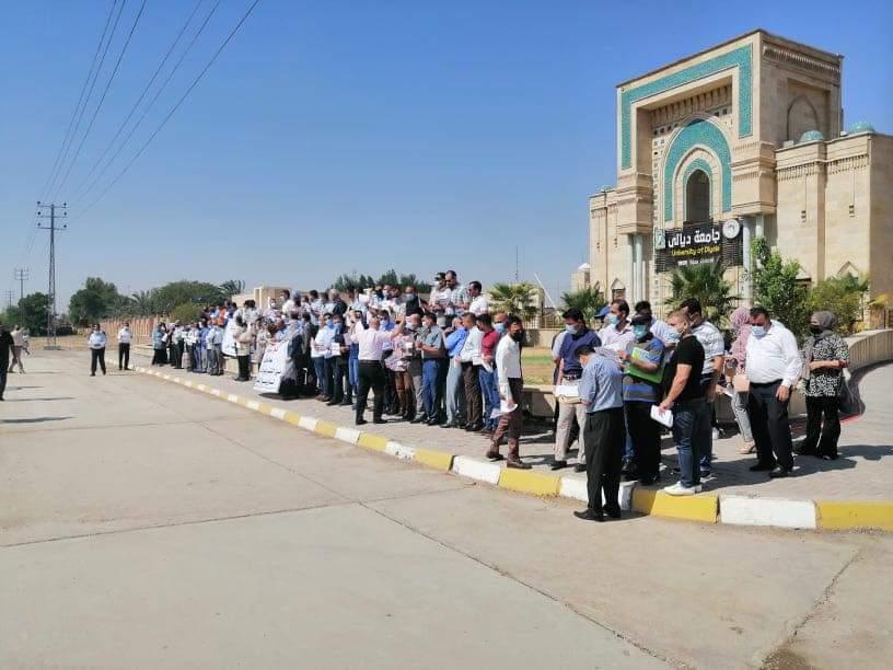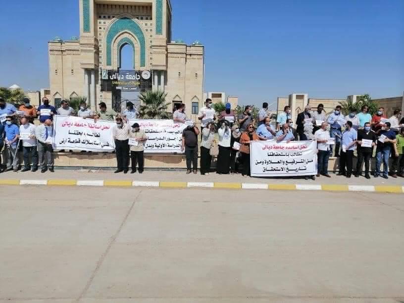 نظم اساتذة جامعة ديالى، اليوم الاثنين، وقفة احتجاجية امام بوابة جامعة ديالى مطالبين بصرف مستحقاتهم المالية وتوزيع قطع اراضي لهم.