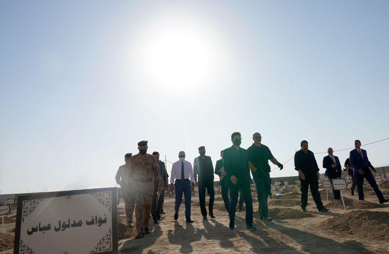 وأظهرت صور نشرها المكتب الاعلامي للكاظمي، تجول الاخير في مقبرة قرية كوجو للايزيديين الذين استشهدوا على يد تنظيم "داعش".