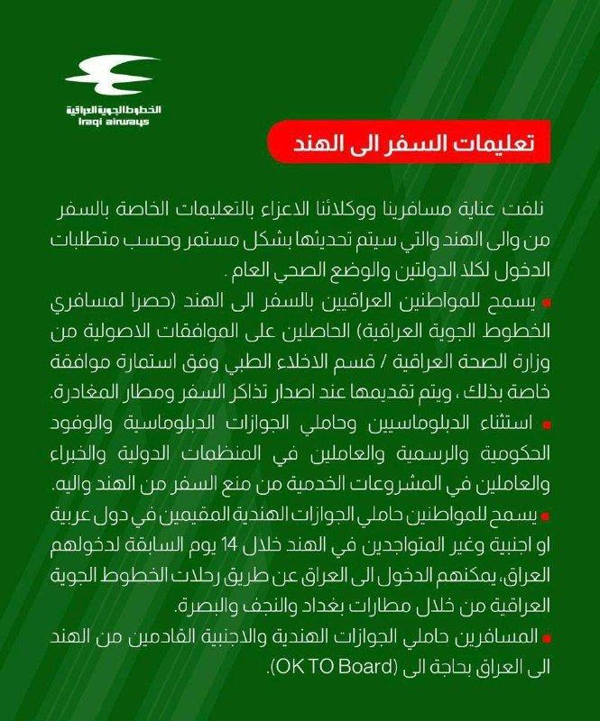 عاد العراق لتسيير رحلاته الجوية مع الهند مجددًا بعد ان توقفت منذ اشهر بسبب تفشي السلالة الهندية لفيروس كورونا.