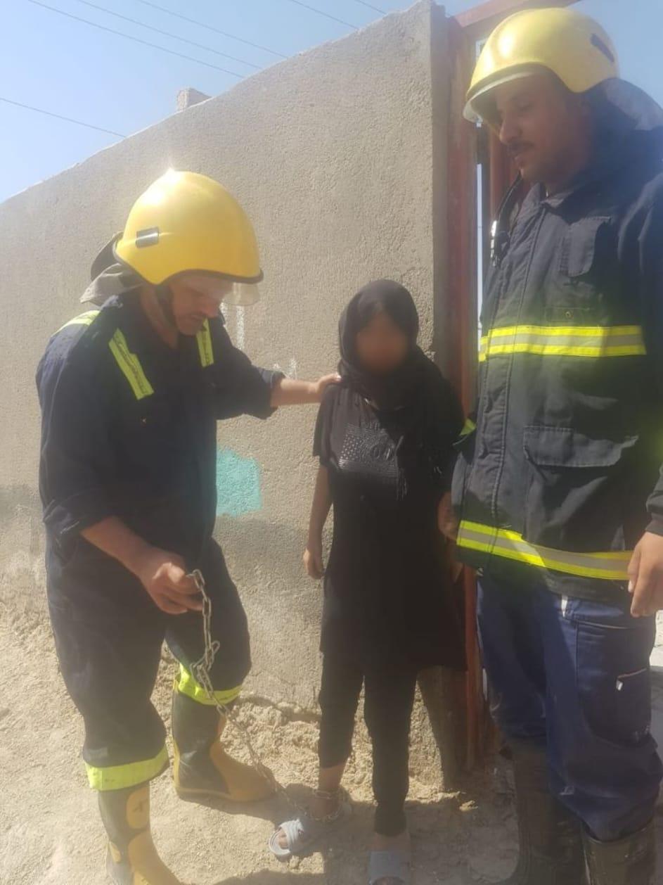 تمكنت فرق الدفاع المدني، اليوم السبت، من انقاذ فتاة مقيدة بسلاسل من حريق اندلع في منزلها في محافظة المثنى.