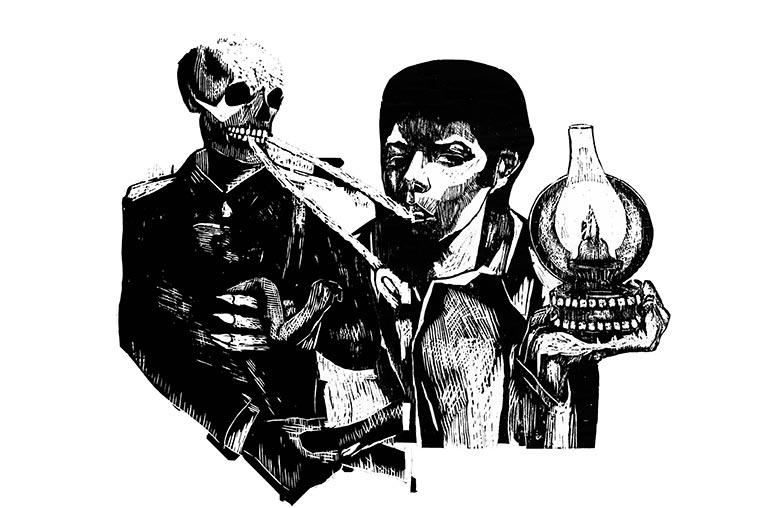 الطلاب هم طلاب فن من نفس جيلي، كانوا يناقشون افكارهم الفنية المعاصرة وطروحات (جوزيف بويس) المفاهيمية والحداثوية عن البيئة والأنسان. وأنا، كنت في نفس هذا الزمن جنديا في جبهة الحرب، وربما في نفس الوقت (مجازا) عندما انفجرت دبابتي واصيب كل من فيها! كنت مع ثلاثة أجساد بشرية فزعة، محشورة في صندوق فولاذي محكم، وحرارة حارقة، انتظر شهيق الحياة الأخير. اعتقد، وربما (في اللاوعي) كنت اناقش مع نفسي ايضا افكاراعن الموت والحرب والبيئة بطريقة مختلفة!!