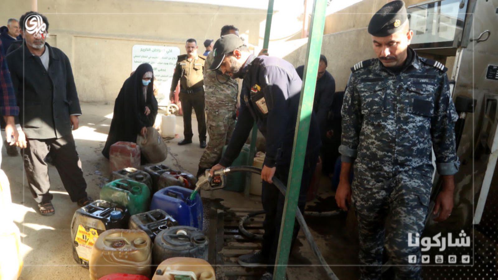 توزيع النفط الأبيض على المواطنين بالبطاقة الوقودية وبمعدل 100 لتر لكل عائلة في بغداد.
