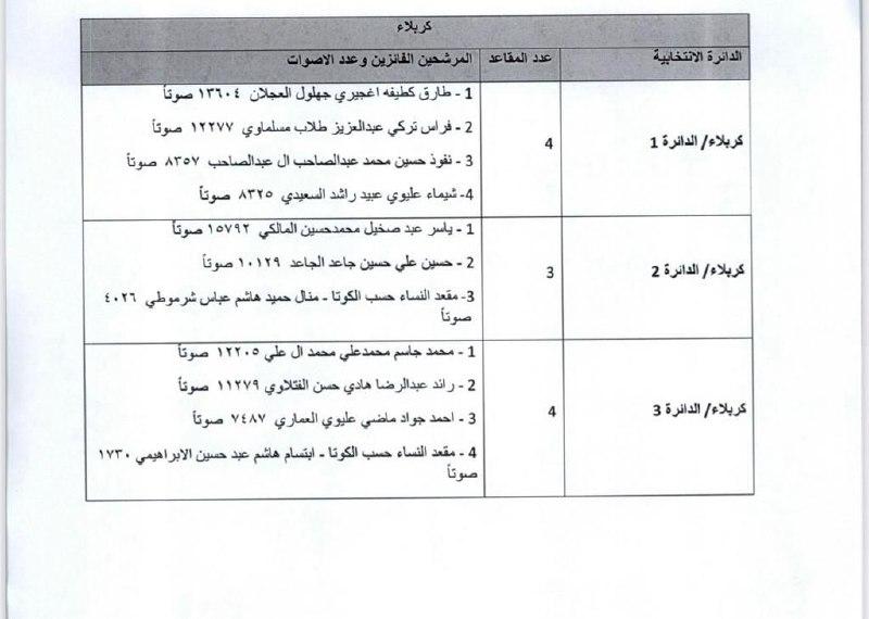 أسماء النواب الفائزين في انتخابات تشرين عن محافظة كربلاء: