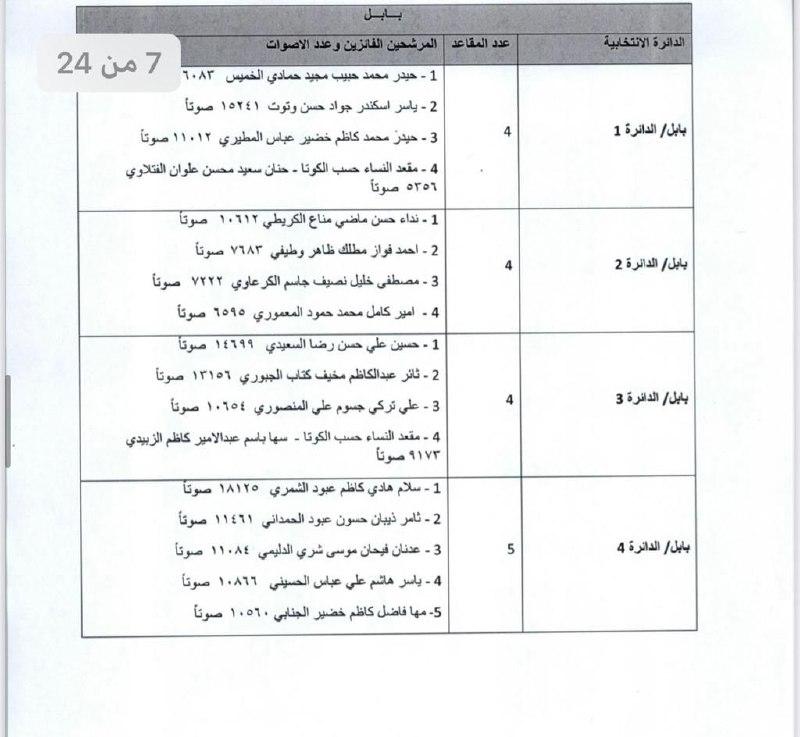 أسماء النواب الفائزين في انتخابات تشرين عن محافظة بابل: