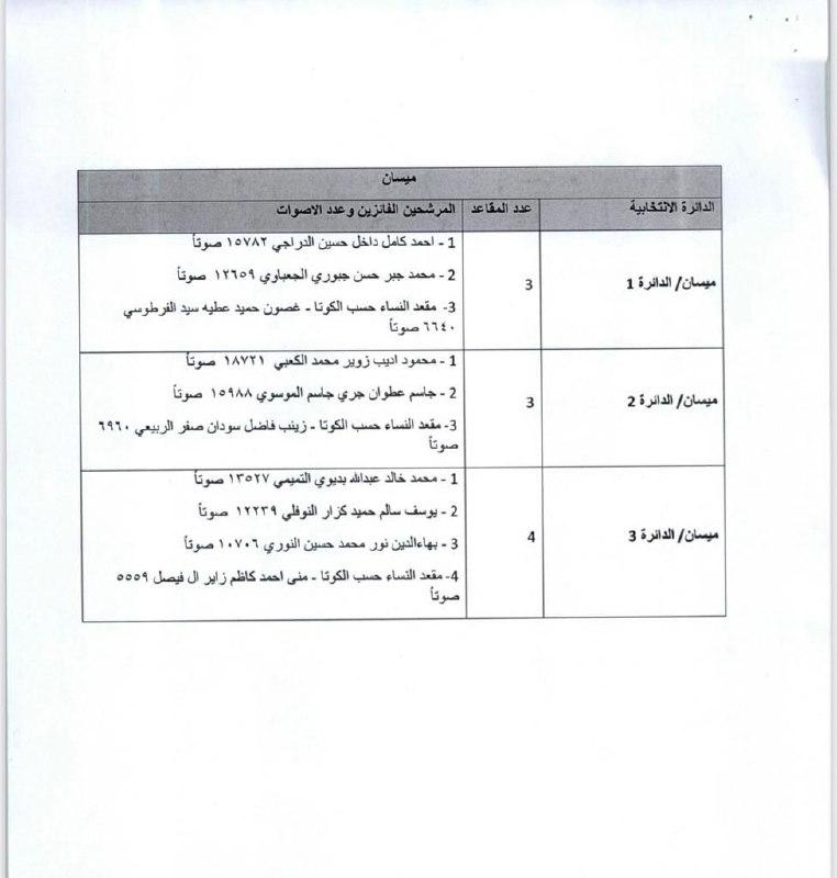 أسماء النواب الفائزين في انتخابات تشرين عن محافظة ميسان: