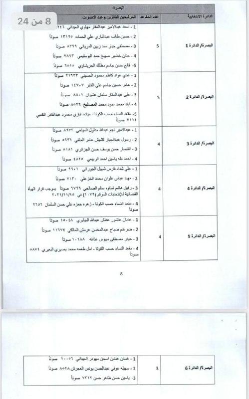 أسماء النواب الفائزين في انتخابات تشرين عن محافظة البصرة: