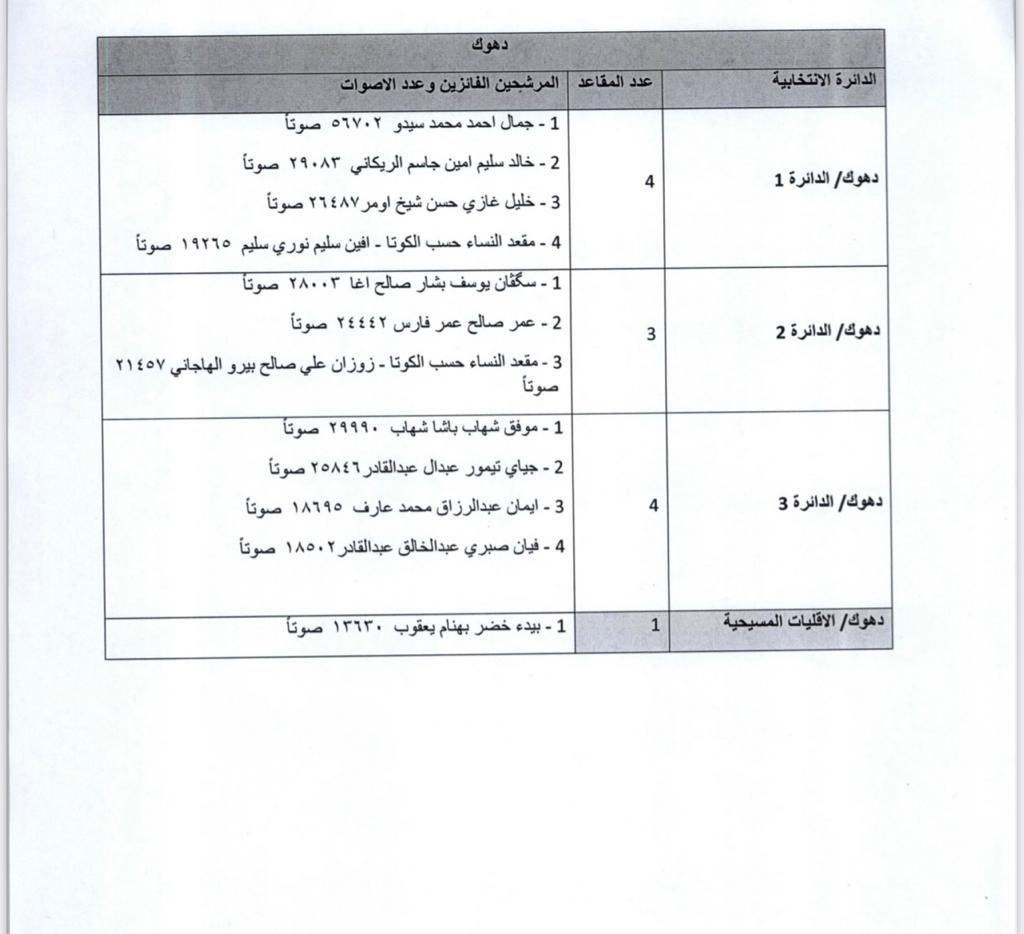 أسماء النواب الفائزين في انتخابات تشرين عن محافظة دهوك: