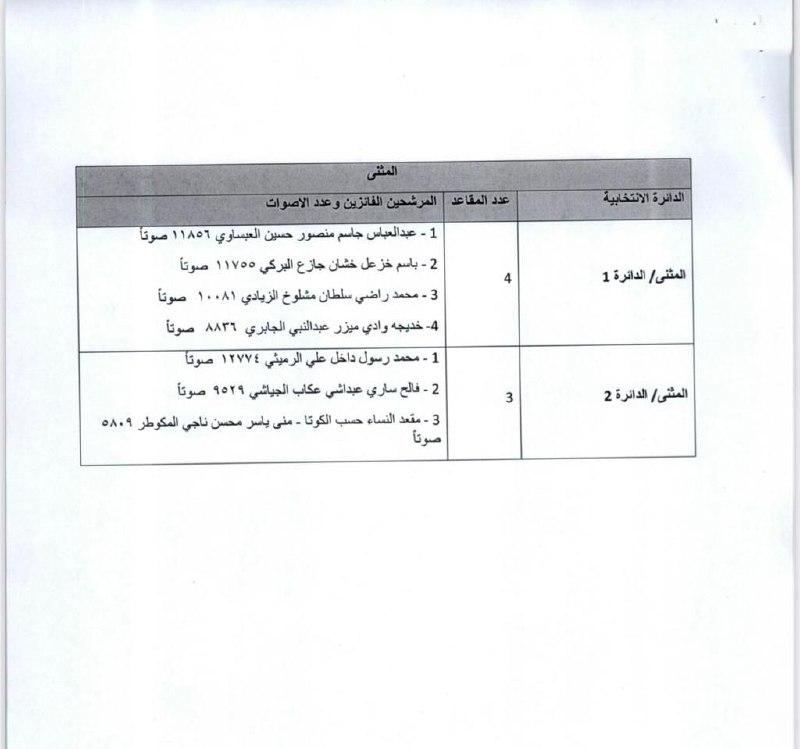 أسماء النواب الفائزين في انتخابات تشرين عن محافظة المثنى: