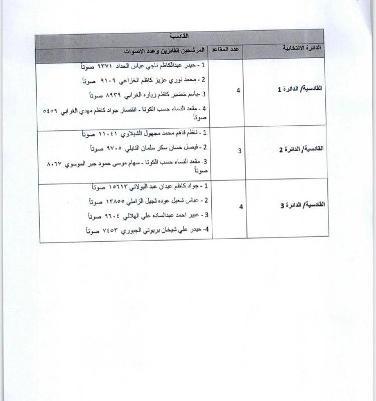 أسماء النواب الفائزين في انتخابات تشرين عن محافظة القادسية: