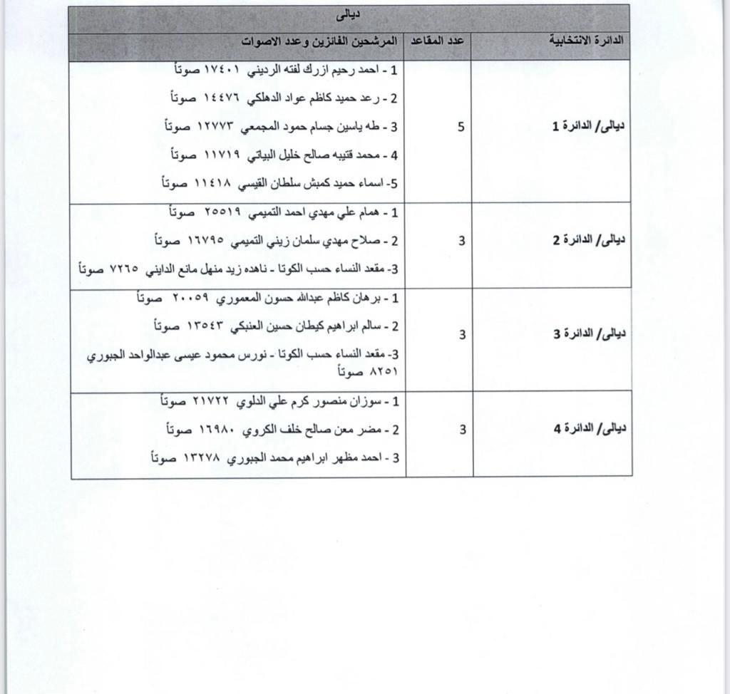 أسماء النواب الفائزين في انتخابات تشرين عن محافظة ديالى: