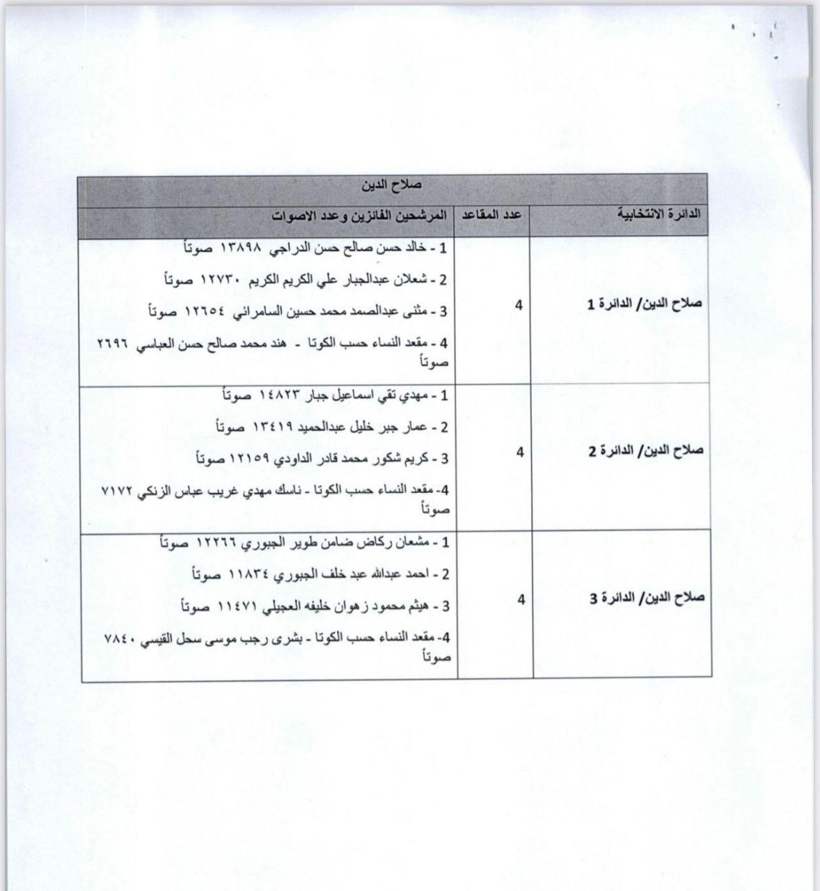 أسماء النواب الفائزين في انتخابات تشرين عن محافظة صلاح الدين: