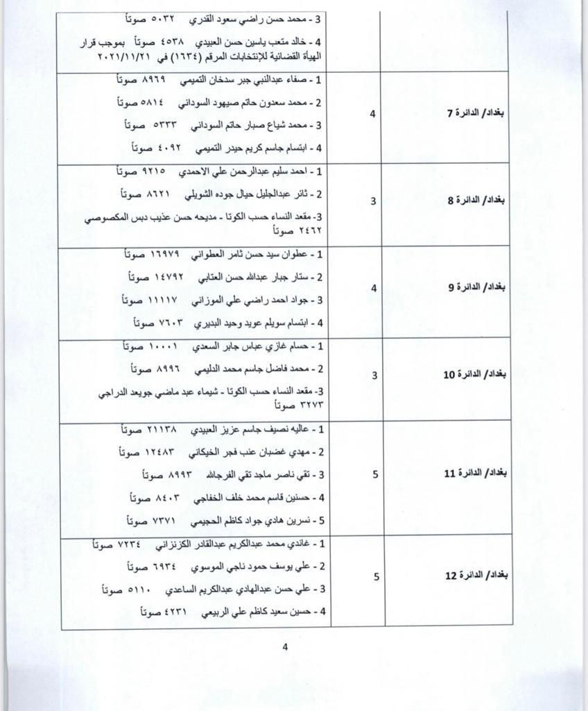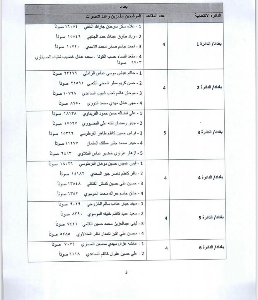 أسماء النواب الفائزين في انتخابات تشرين عن العاصمة بغداد: