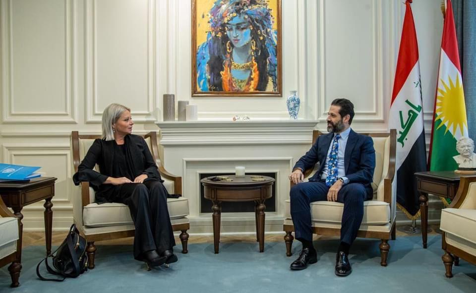 التقت الممثلة الخاصة للأمين العام للأمم المتحدة في العراق جينين بلاسخارت ،اليوم الخميس، نائب رئيس وزراء إقليم كردستان قوباد طالباني.