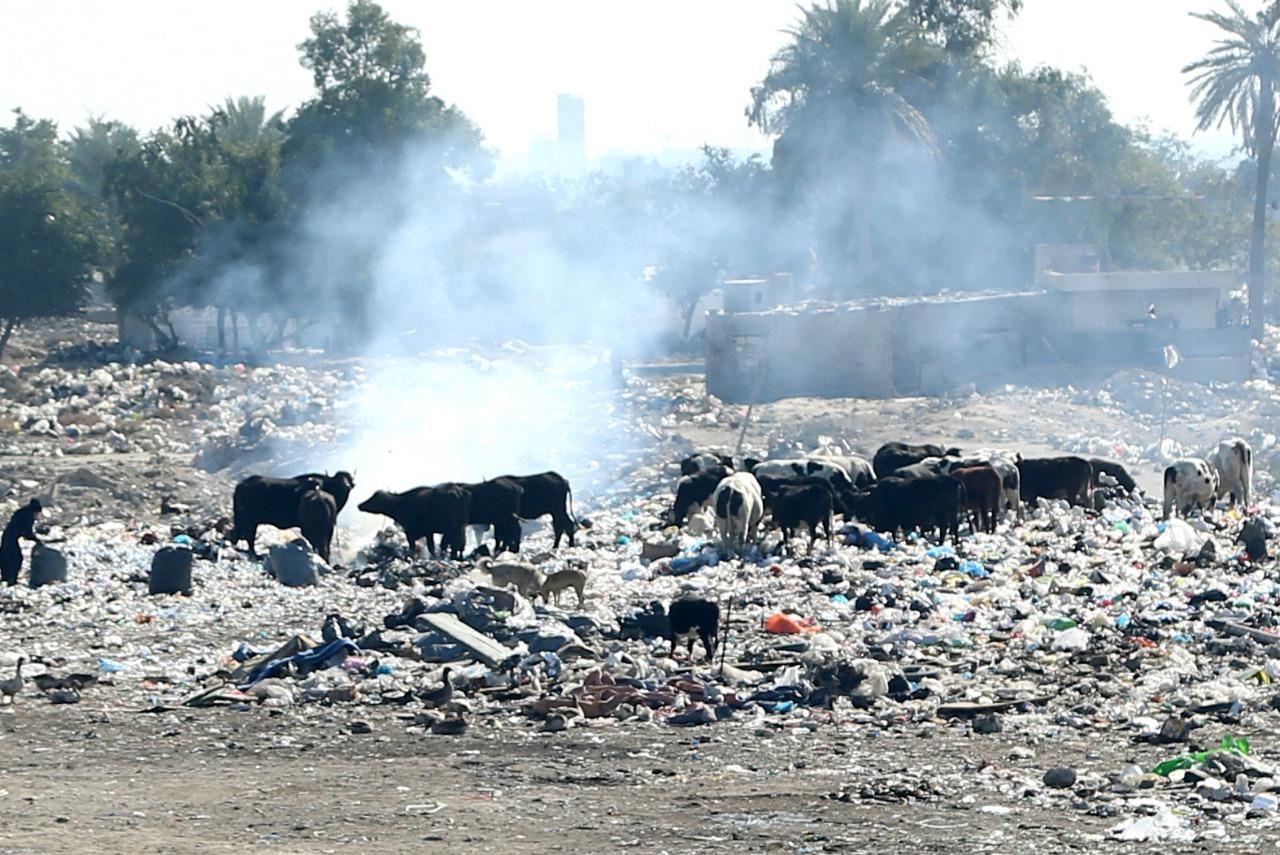 اضرار بيئية كبيرة تتسبب بها النفايات في معسكر الرشيد، شرقي بغداد.