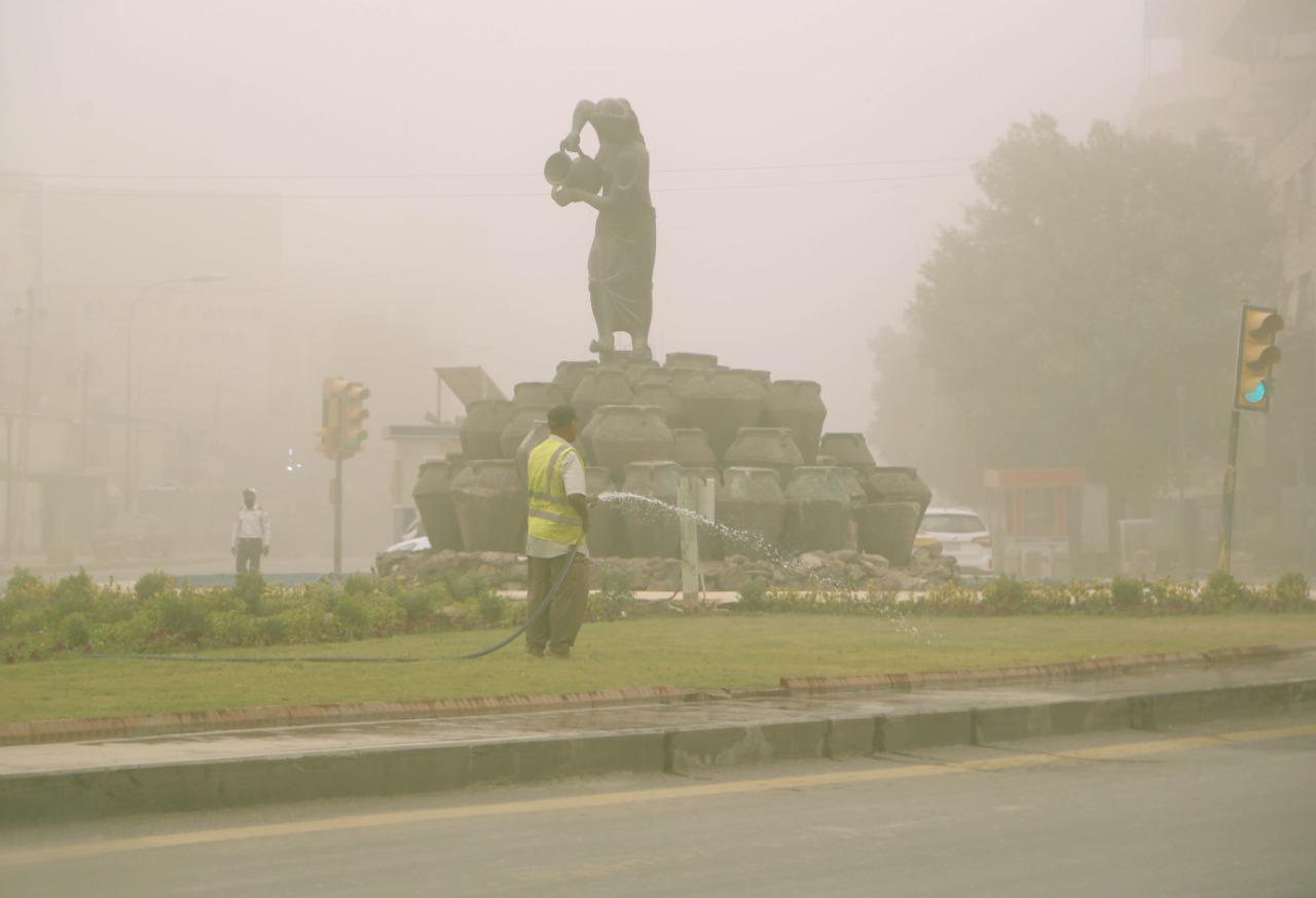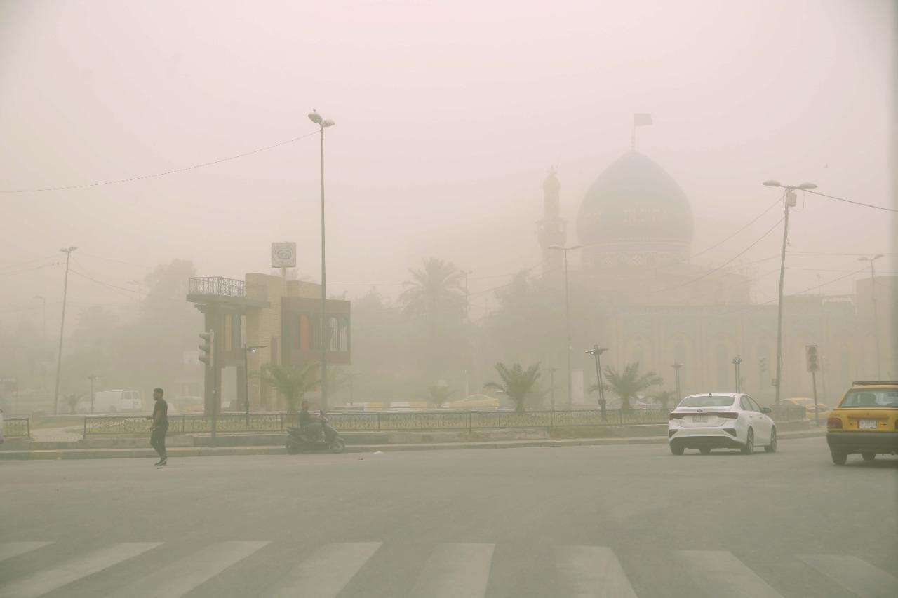 غطّت عاصفة ترابية، اليوم الاثنين، سماء العاصمة بغداد، بعد توقعات هيئة الأنواء الجوية أن تشهد البلاد عودة لتصاعد الغبار.