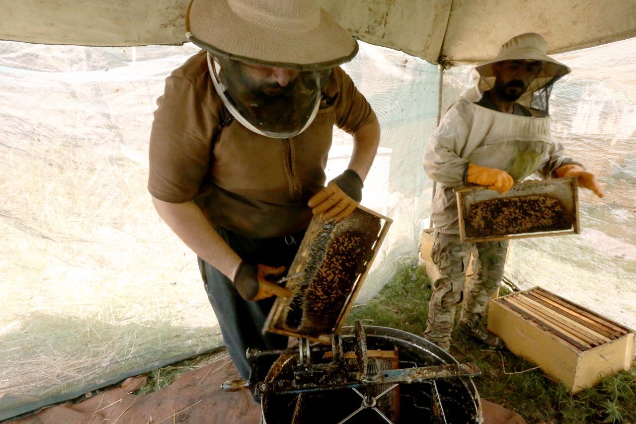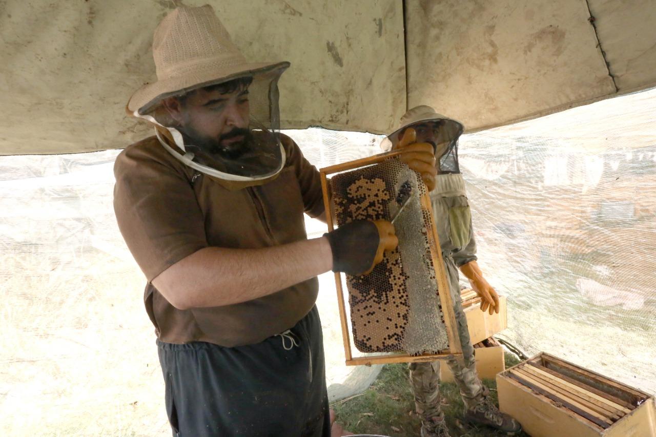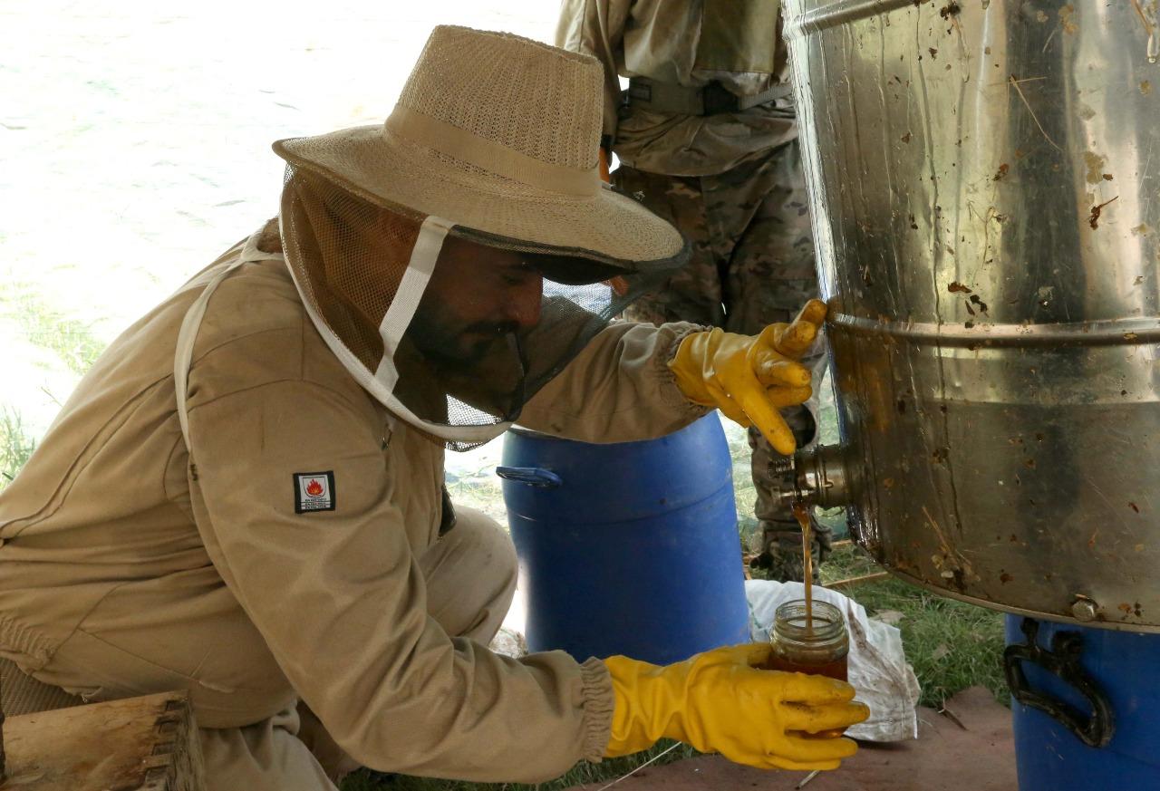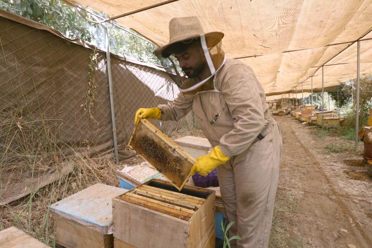 وثقت عدسة (المدى)، لقطات من عمل أحد مناحل مربي النحل أثناء طريقة استخراج العسل وبيعه على المواطنين.