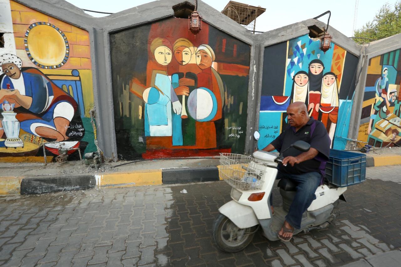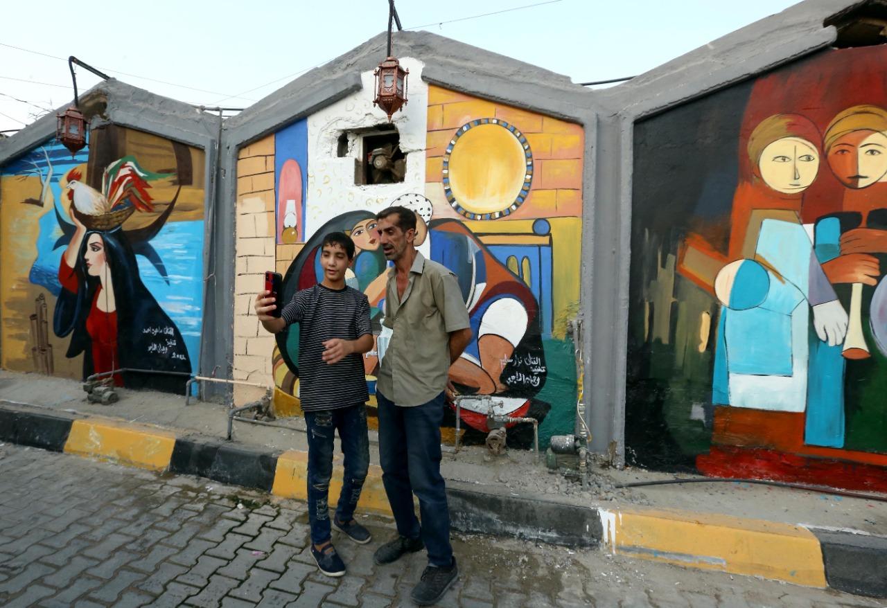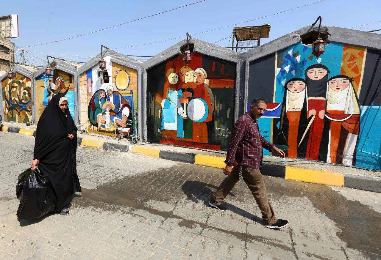 تزين لوحات فنية رسمتها الرسامة "وجدان الماجد"، جدران منطقة الشواكة التراثية في بغداد، مما يعيد الروح الى تلك المناطق القديمة.