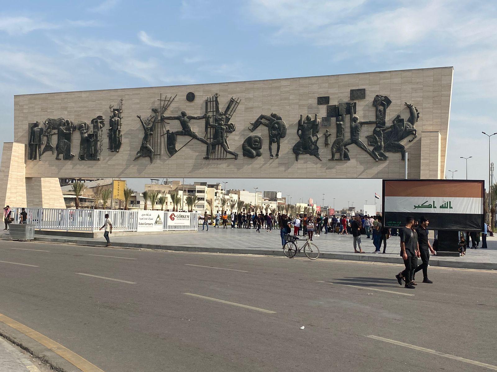 واضاف أن" العشرات من المتظاهرين بدأوا بالتوافد الى ساحة التحرير في ساعات مبكرة من ظهر اليوم وقبل الموعد المحدد لانطلاق التظاهرة، حاملين معهم لافتات وصور لشهداء الانتفاضة ".
