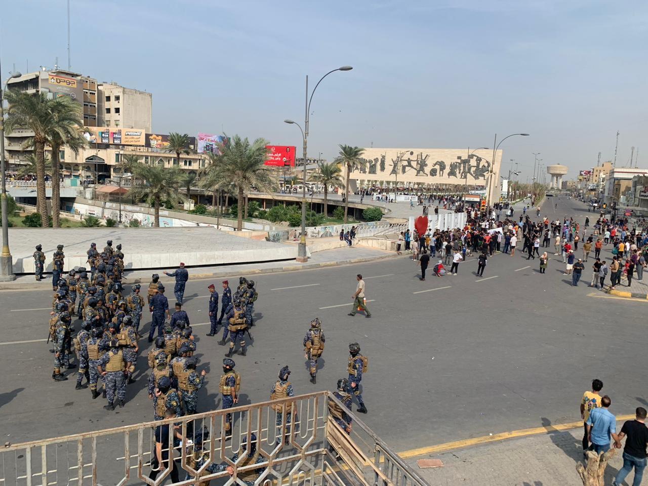 شهدت العاصمة بغداد، اليوم الثلاثاء، انتشارا امنيا كثيفا وقطعا للطرق والجسور بالتزامن مع الذكرى الثالثة لانتفاضة تشرين.