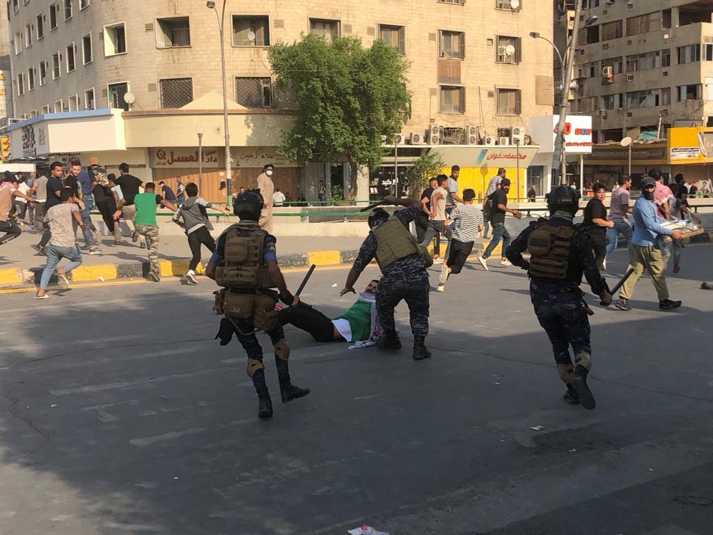 واشار الى أن " اعداد المتظاهرين بدأت بالتزايد بعد ظهر اليوم فيما حاولت قوى الامن ابعاد المحتجين وطردهم من ساحة التحرير باستخدام القوة".