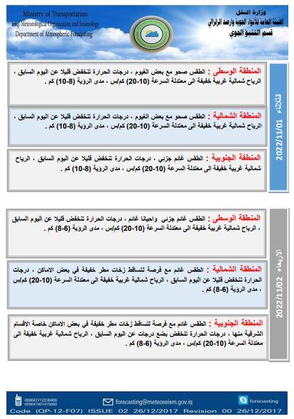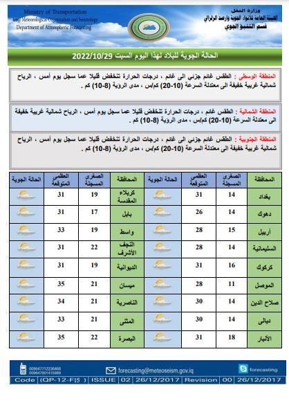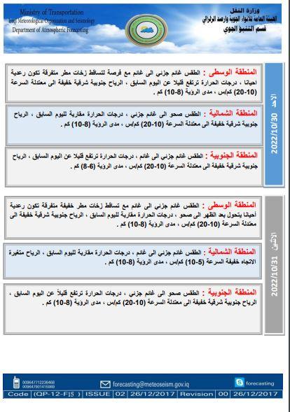 أعلنت هيئة الأنواء الجوية، اليوم السبت، حالة الطقس في البلاد للأسبوع الحالي، فيما توقعت تساقطاً للأمطار خلال اليومين المقبلين.