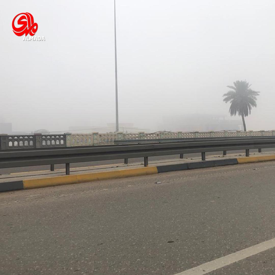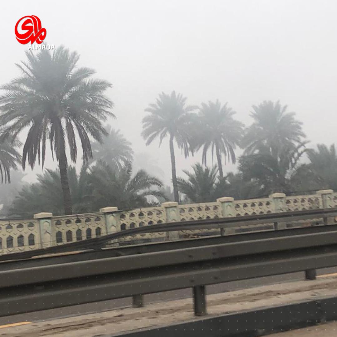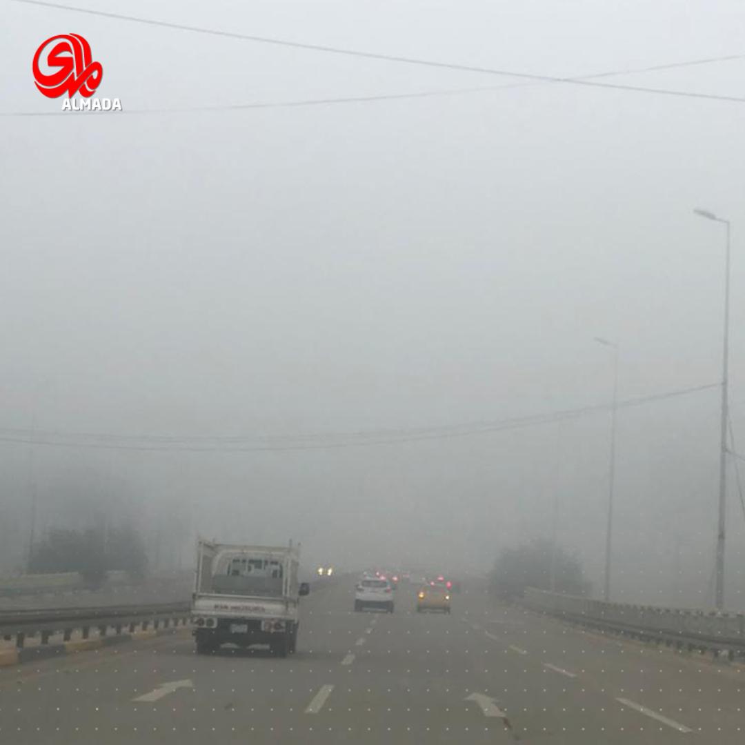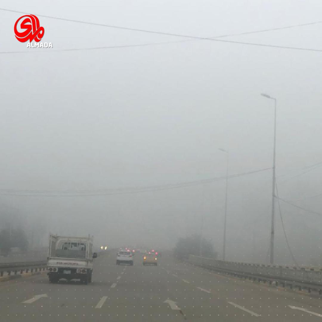 غطى الضباب الكثيف سماء العاصمة بغداد، صباح اليوم الثلاثاء، وسط وتحذيرات من قيادة المركبات بسرعة.
