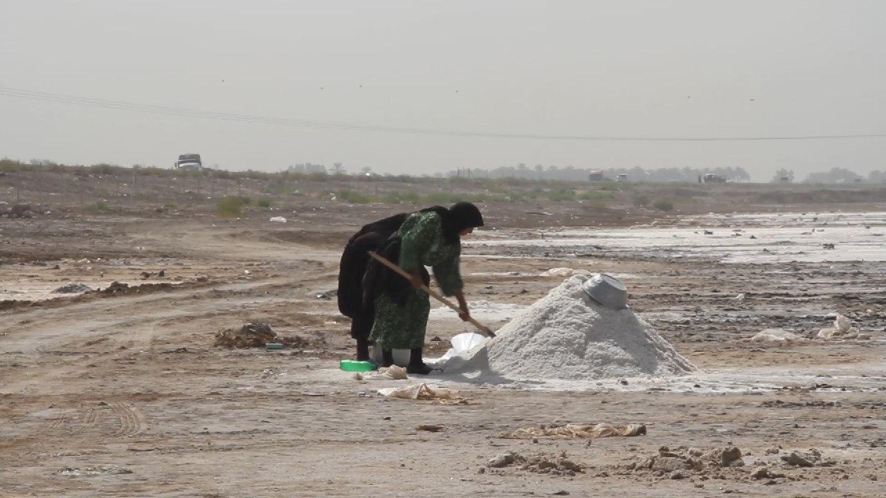 تبدأ (خيرية سلمان) البالغة من العمر 55 عاماً، نشاطها في ساعات الفجر الأولى صباح كل يوم، برفقة نساء أخريات لجمع أكياس الملح، وتجهيزها للبيع في أسواق بابل والديوانية، حيث يقصدن ناحية الإمام ، قرب الطريق الدولي الرابط بين محافظتي بابل وبغداد، إذ تتكون بقع ملحية متفرقة، في تلك البراري.