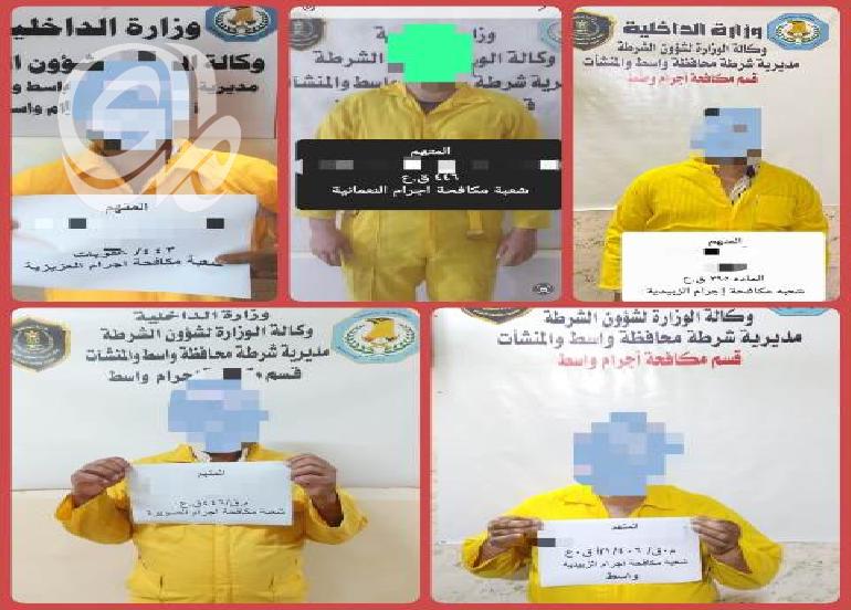 تمكنت مفارز مكافحة الإجرام، اليوم الاثنين، من إلقاء القبض على خمسة متهمين، أبرزها متهم بجريمة قتل في محافظة واسط.