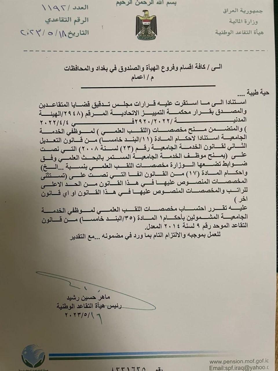 بالوثيقة.. احتساب مخصصات اللقب العلمي للأستاذ الجامعي المتقاعد.