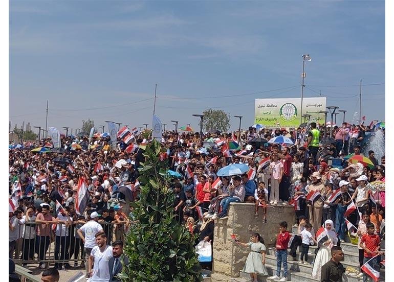وزين الطيران الشراعي سماء المهرجان وحلقت معها مروحيات الجيش العراقي في تعبير لها عن البهجة بهذا اليوم.