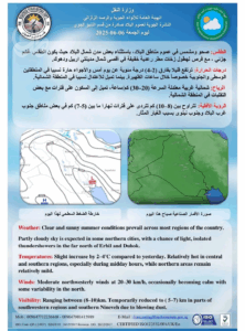 أعلنت هيئة الأنواء الجوية، اليوم الجمعة، حالة طقس العراق خلال الأيام المقبلة.