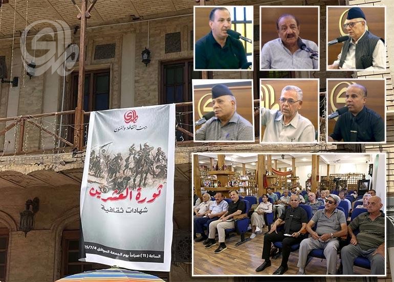 اقام بيت المدى للثقافة والفنون ، جلسة نقاشية تحت عنوان " شهادات ثقافية ومواقف اجتماعية من ذاكرة الثورة " بمناسبة مرور 105 أعوام على اندلاع ثورة العشرين، وذلك بمشاركة عدد من الباحثين والأكاديميين المختصين بالتاريخ والهوية الوطنية، حيث تناولت أبرز المحطات السياسية والاجتماعية التي مهدت للثورة، إلى جانب دور المرجعية الدينية والشباب والمثقفين في تحريك الشارع العراقي آنذاك، وتأثر الوقائع بإعلان بنود سايكس بيكو التي كانت سرية أول الأمر، فضلاً عن ثورة سعد زغلول في مصر عام 1919. وأكد الباحثون على أهمية تثبيت يوم الـ 30 من حزيران وهو يوم الثورة، عيداً وطنياً رسمياً بوصفه نقطة الانطلاق الفعلية لتأسيس الدولة العراقية الحديثة.