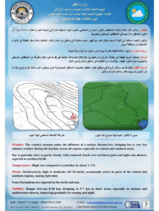 توقعت هيئة الأنواء الجوية، اليوم الثلاثاء، ارتفاع درجات الحرارة بعودة تأثير المنخفض الحراري.