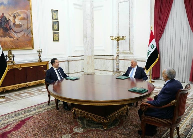 عقدت الرئاسات العراقية الثلاث، أمس الثلاثاء، اجتماعاً في قصر بغداد ضم رئيس الجمهورية عبد اللطيف جمال رشيد، ورئيس مجلس الوزراء محمد شياع السوداني، ورئيس مجلس النواب محمود المشهداني، لمناقشة جملة من الملفات الإقليمية والتشريعية، وفي مقدمتها اتفاقية تنظيم الملاحة في خور عبدالله مع الكويت.