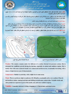 أعلنت هيئة الأنواء الجوية، اليوم الأحد، حالة طقس العراق خلال الأيام المقبلة.