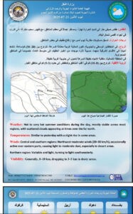 أعلنت هيئة الأنواء الجوية، اليوم الإثنين، حالة طقس العراق خلال الأيام المقبلة.